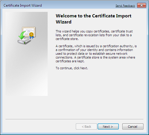 Select the John.p12 certificate file to be imported and install it in the Trusted Root Certification Authorities store.